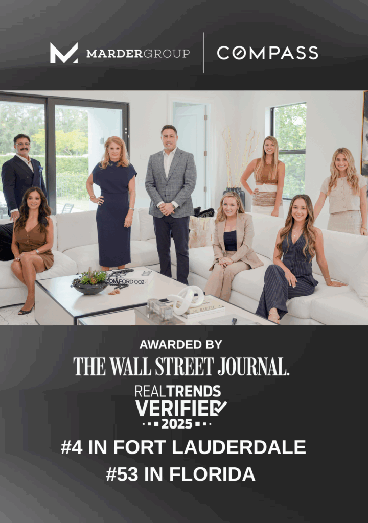 That reputation is backed by industry recognition, this year The Wall Street Journal’s RealTrends Rankings placed The Marder Group #4 in Fort Lauderdale and #53 in the state of Florida.